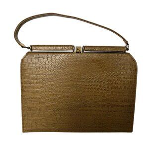 Vintage Crocodile Bag 1950s Green Featherlite Retro Mod Neutral Granny