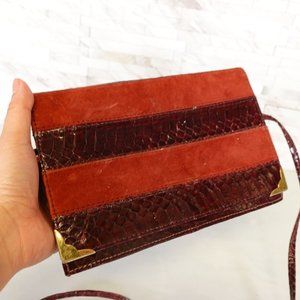 Vintage Crocodile Crossbody Bag Medium Wine Leather Satchel Croc Shoulder Sling