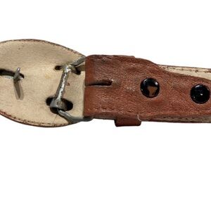 Brown croc print embossed belt and matching buckle In size 28” x 1.25” wide. Used with minor wear