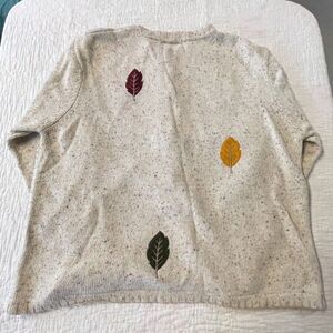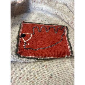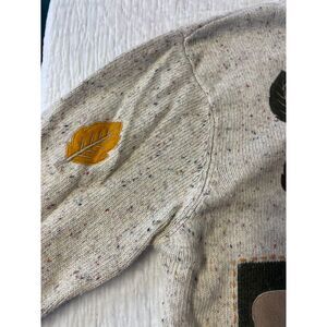 Celebrate fall in style with this vintage Croft & Barrow grandmacore / cottagecore cardigan! This cozy speckled knit features charming appliqué patches of a moose, black bear, evergreen tree, and colorful autumn leaves, with embroidery accents for extra texture. The oatmeal base with flecks of red, yellow, and black makes it warm and rustic—perfect for layering on chilly days. A button-front design adds versatility, making it easy to wear open or closed.