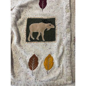 Vintage Croft & Barrow Autumn Cardigan Sweater L Moose- Bear- Leaves Cottagecore