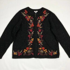 Vintage Croft & Barrow Fall Foliage Embroidered Cardigan Size M