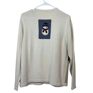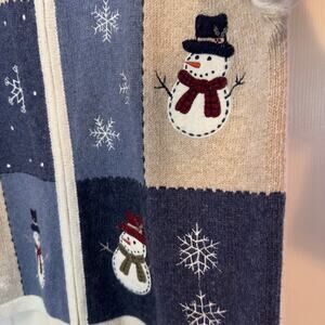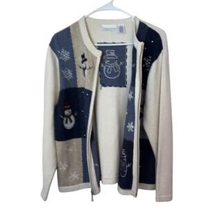 Vintage Croft & Barrow Full Zip Winter Sweater Size L Holiday Christmas Snowman