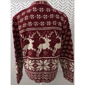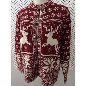 Vintage Croft & Barrow Red Wool Blend Reindeer Snowflake Sweater Christmas XL