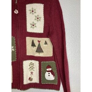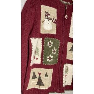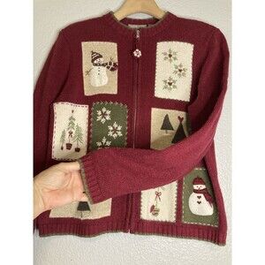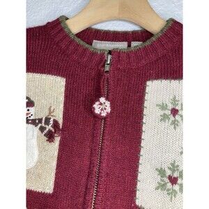 Vintage Croft & Barrow Sweater Petite M Red Full Zip Snowman Christmas Patchwork