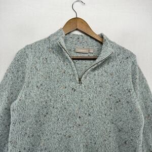 Vintage Croft Barrow Sweater Womens Large Blue Knit 1/4 Zip Grandma Cottage Crop