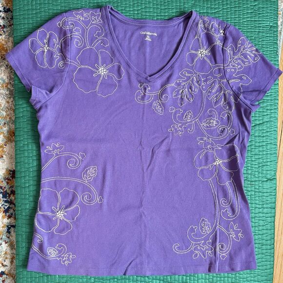 Vintage Croft & Barrow Top Women XL Purple Floral Embroidered Hawaiian Tropical