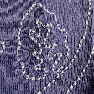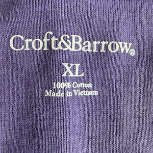 The Vintage Croft & Barrow Top in Women's XL size features a beautiful purple floral embroidered pattern, a V-neckline, and short sleeves for a comfortable fit. Made from 100% cotton knit fabric, this pullover top is machine washable and perfect for casual, workwear, or business occasions. The retro Hawaiian tropical theme adds a touch of nature-inspired charm, making it a versatile and unique addition to any wardrobe.