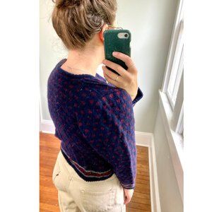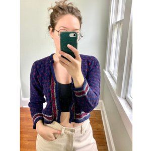 Vintage Crop Button Up Navy Blue Polka Dot Wool Cardigan Sweater