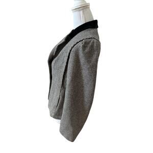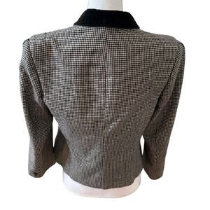 Vintage Cropped Boxy Houndstooth Knife Pleat Puffy Blazer Velvet Trim 10