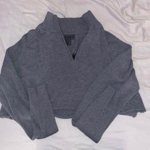 Vintage Cropped Collared Quarter Zip Oversized Long Sleeve Gray Pullover Sweater