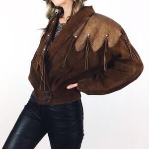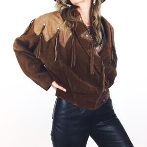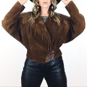 Vintage Cropped Western Suede Jacket with Fringe | Size M