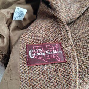 Vintage Cross Country Fashions Womens Wool Tweed Blazer Brown Three-Button