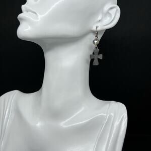 These vintage cross hook earrings feature a unique and stylish design. The earrings measure approximately 2 inches (5.08 cm) in length, including the hook closure.