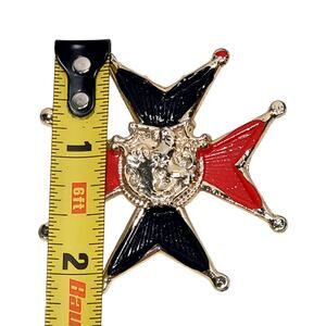 Vintage Cross Lion Brooch Pin Red Blue Gold Tone Back