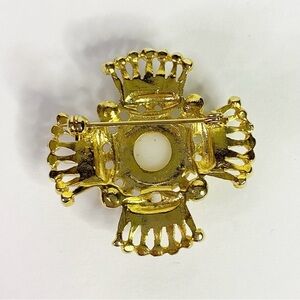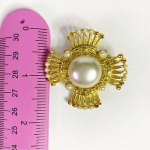 Vintage Brooch Pin • Gold cross openwork with Pearl center