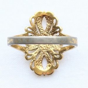 Vintage Cross Ring Signed COP 89 Religious Jewelry Size 8.75. Wear to gold tone on band as shown.