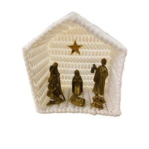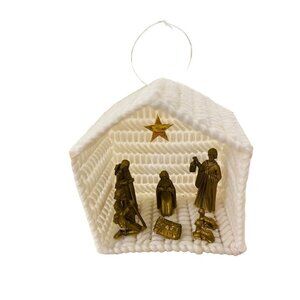 Vintage Cross Stitch Dimensional Manger Nativity Set Tabletop 3.5"h x 3"w Plasti