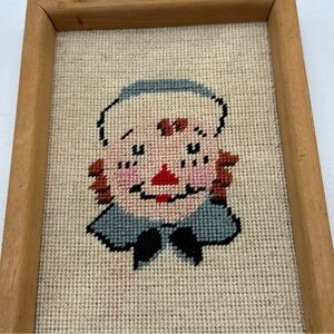This Vintage Cross Stitch Framed Embroidered Raggedy Ann Wall Hang by The Creative Circle is a charming piece featuring a clown theme. Made in the United States, this framed cross stitch picture showcases intricate embroidery details and a nostalgic design perfect for any craft enthusiast or collector. Displaying a unique and whimsical touch to any room, this finished cross stitch piece is a delightful addition to any home decor.