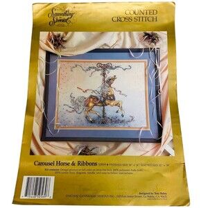 * Needle Point Cross Stitch Patterns Only: Janlynn English Cottage & Something Special Counted Cross Stitch Carousel Horse & Ribbons