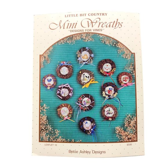 Vintage Cross Stitch Patterns, Mini Wreaths Little Bit Country Designs for Vines by Bette Ashley Leaflet 10, Needlework Booklet 1985