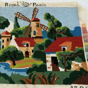 Vintage, windmill, scene, landscape, needlepoint, cross stitch, handmade