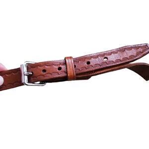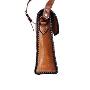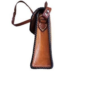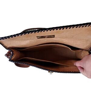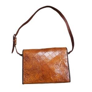 Vintage Crossbody Purse Handbag Brown Leather Tooled Whipstitch Gold Closure