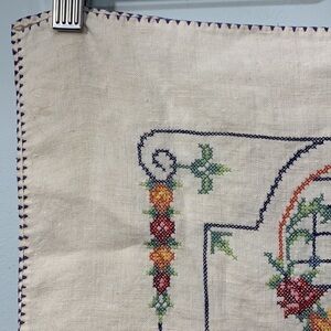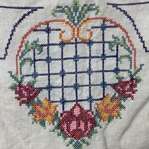 Vintage Cross-stitch Floral Pineapple Hearts Linen Tea Towel Runner 39.5” x 16”