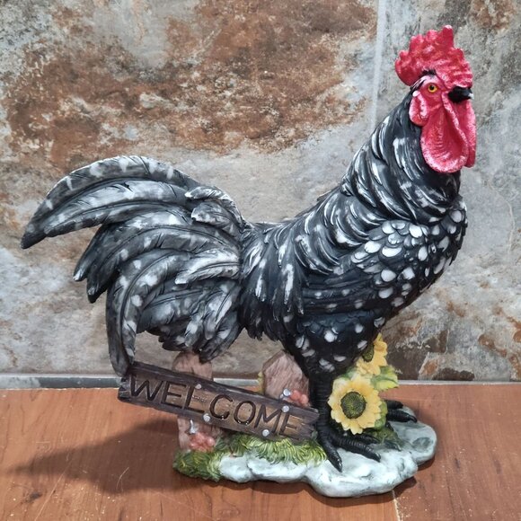 Vintage Crowing Sound Welcome Chicken Rooster Figurine 13 In Tall Farmhouse Decor