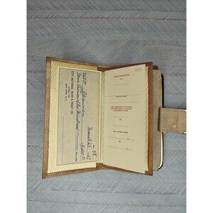This elegant vintage wallet from Crown features a classic beige leather exterior and gold accents. Ideal for securely storing your checkbook and essentials.