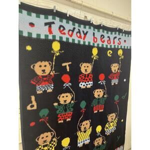 Vintage Crown Crafts Blanket Teddy Bear Reversible Yugoslavia Balloons Vuteks Bl