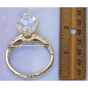 Vintage Crown Diamond Gem Light Gold Tone Art Deco Brooch | J30