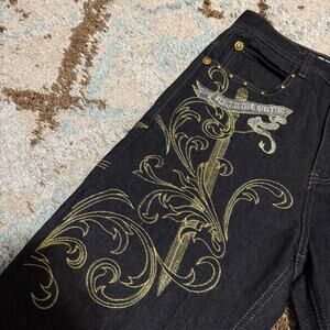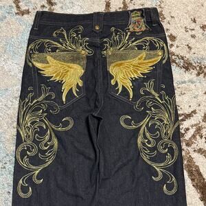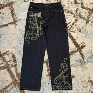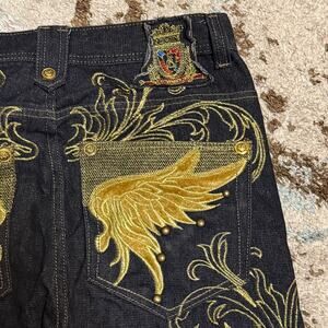 Vintage Crown Holder Game Time Gold Wing Paisley Jeans Size 32x29 Cyber Y2K