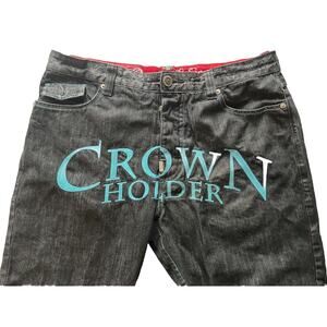 Vintage Crown Holder Y2K Baggy Jeans Embroidered 40/34