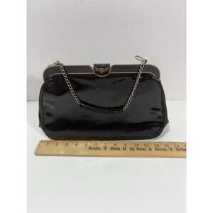Vintage Crown Lewis 50s/60s Black Patent Leather Chain Handle Bag Retro Purse