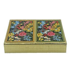 Vintage Crown Plastic Coated Playing Cards Double Deck Floral W/ Case Retro USA Gold Tone Edges Hollywood Regency In Very Good Pre-owned Condition. No rip or tears. No folded edges. Beautiful Case. 52 cards per set and 2 Jokers.