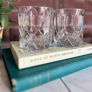 Vintage Crown Royal Whiskey Rocks Glass Starburst Crystal Tumbler Glasses Set of 2