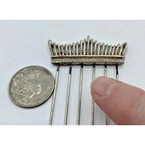 Vintage Crown Shape Hair Pin Pick Comb Glam Regency Collectible Silver Tone Updo In Very Good Pre-owned Condition. There is discoloration where the metal prongs meet the crown. It is on both sides. Please see the pictures.