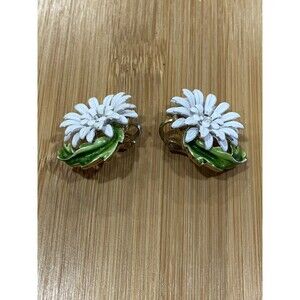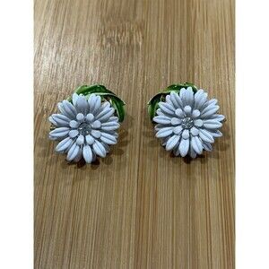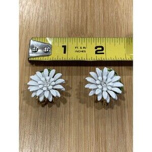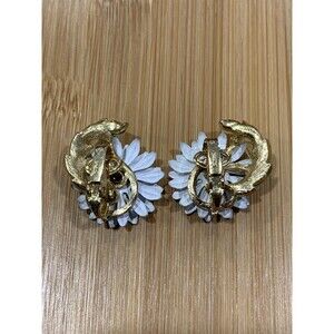 Vintage Crown TRIFARI White Enamel Clip On Earrings Gold Tone *FLAWS