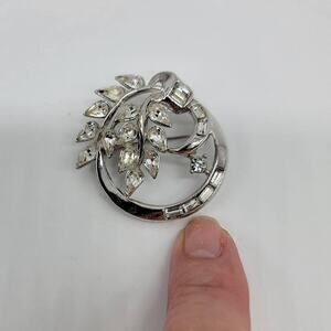 Vintage Crown Trifari 1950's Wreath Silver Rhinestone Brooch Pin Jewelry
