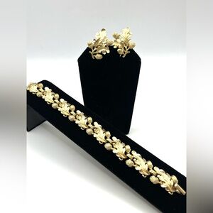 Vintage Crown Trifari Acorn and Oak Leaf Bracelet Earrings Set Alfred Philippe