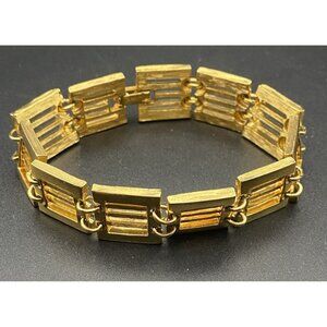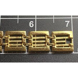 Vintage Crown Trifari Bracelet Textured Gold Tone Panel 7" Square 5/8" W Links