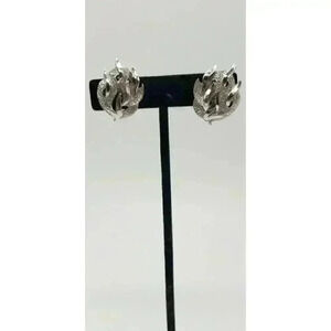 Vintage Crown Trifari Brooch Earrings Set MCM Fire & Ice Flames Silver RARE.