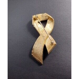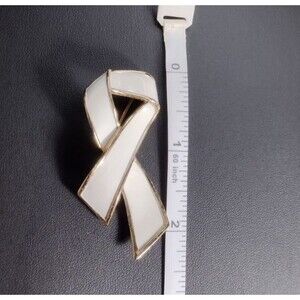 The Vintage Crown Trifari Ribbon Brooch Lapel Pin is a statement piece of jewelry featuring a classic bow shape with white enamel detailing and gold tone accents. Signed by the renowned brand Trifari, this original vintage piece is perfect for special occasions like Mother's Day, anniversaries, and birthdays. Made in the United States, this brooch exudes beauty and elegance, making it a timeless addition to any woman's jewelry collection.