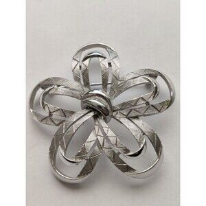 Vintage Crown Trifari Brooch Pins Lot Of 2 Silver Tone Flower Circle ~2"