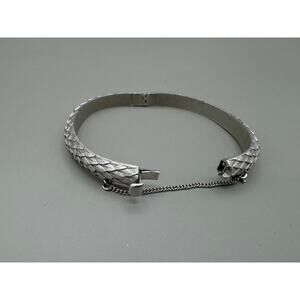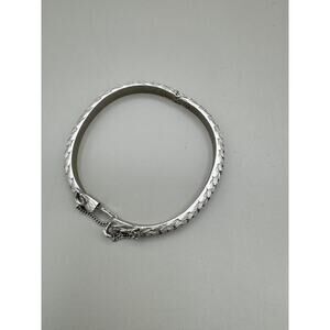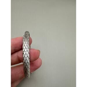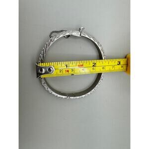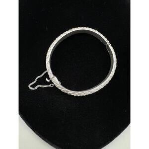Vintage Crown Trifari Brushed Silver Tone Feathers Hinged Bracelet