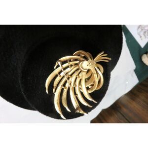 Vintage Crown Trifari Gold Tone Feathers and Pearl