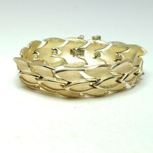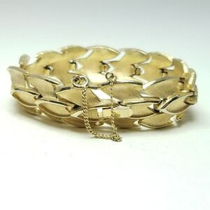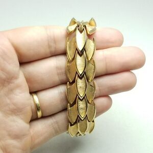 Vintage Crown Trifari Gold Tone Panel Chain Bangle Bracelet, Retro 60s 70s Style