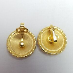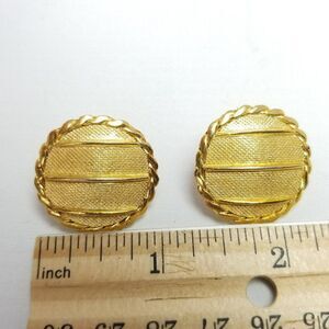 Vintage Crown Trifari Gold Tone Circle Dome Shape Clip On Earrings Stripe Design
