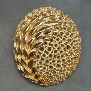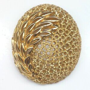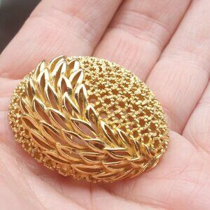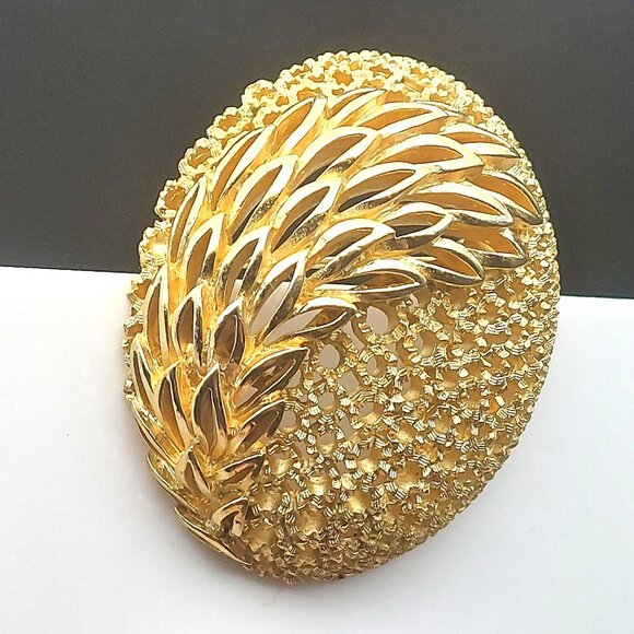 Vintage Crown Trifari Gold-Tone Leaf Motif Oval Brooch Pin Mod Retro Openwork De